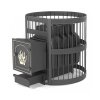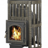 Топка выполнена из жаропрочного чугуна толщиной 12 мм в самых нагруженных местах. Благодаря стильному вентилируемому кожуху «Ковка» покрытому термостойкой краской и патиной «Бронза» в печь помещается большая загрузка камней 210 кг вследствие чего печь долго аккумулирует тепло после угасания огня в каменке и экранирует излучение от разогретой топки.