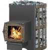 Для парной бани была создана печь Везувий Скиф Стандарт 22 (ДТ-4) с Т/О, ее объем 8-18 м.куб. Состоит это изделие из чугунной дверки без стекла; оборудована сеткой из металлического прута толщиной 6 мм и теплообменника. Топка изготовлена из конструкционной стали толщиной 6-8 мм, имеется выносной топочный канал длинной 25 сантиметров, за счет его топится печка из соседнего тамбура (комнаты отдыха).