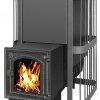 Большой объем камней, закладываемый в каменку, обеспечит не только быстрое и эффективное создание пара, но и его равномерное распределение по парилке, обеспечивая стабильность температуры. Расположившаяся вокруг металлической топки каменная загрузка компенсирует тепловое излучение металла. Шторм 18 Панорама способна обогреть парную от 12 до 22 м3 и на долгое время сохранять тепло после затухания огня.