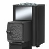 Банная печь Везувий Скиф ковка 16 (205) создана для парной объемом 8-18 м.куб. Оснащена выносным топочным каналом с большим каминным стеклом, топится из смежного помещения (комнаты отдыха). Отличный вариант для тех кто любит созерцать на пламя огня. Печь со стальной сеткой, с большой вместимостью камней, надолго задерживает температуру после того как потухнет огонь в печи. И экранирует инфракрасное излучение исходящее от разогретой печи. Дверка обладает панорамным, жаростойким стеклом размером 410х410 мм.